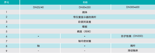 結(jié)構(gòu): 模塊化結(jié)構(gòu) 安裝長度符合ISO5752/20標(biāo)準(zhǔn) 通過多樣的材料選擇實(shí)現(xiàn)通用性 頂端平臺連接符合ISO5211標(biāo)準(zhǔn) 泄漏測試標(biāo)準(zhǔn)有EN 12266-1/P12 泄露率A 蝶閥安全要求遵循歐洲壓力設(shè)備97/23/EC管理?xiàng)l例 密封件采用特殊的幾何形狀設(shè)計(jì),可滿足更大通徑閥門的安全密封性 優(yōu)點(diǎn): 扭矩小 安裝方便 連接方式多樣 溫度和壓力范圍廣 全面符合最新國際規(guī)范 更多的適用規(guī)格和更高的性價比 技術(shù)參數(shù): 閥類: 襯膠蝶閥 閥體材質(zhì): GGG40 工作壓力: 0-16 bar 最高工作溫度℃: 150 ° C 通徑范圍DN : 25-600