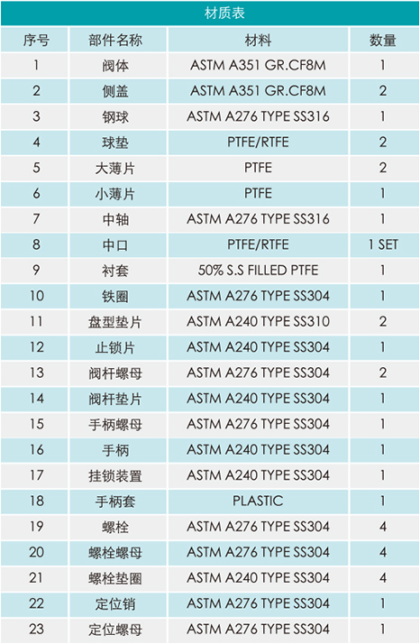 結(jié)構(gòu): 閥桿防爆出裝置設(shè)計(jì) 閥體設(shè)計(jì)合理便于快速拆裝 頂端平臺(tái)連接符合ISO5211標(biāo)準(zhǔn) 容易實(shí)現(xiàn)自動(dòng)化控制和遠(yuǎn)距離控制 通道平整光滑,不易沉積介質(zhì),易于清洗 優(yōu)點(diǎn): 流體阻力小 密封性能好 閥桿密封可靠 開關(guān)迅速,方便 全面符合最新國(guó)際規(guī)范 技術(shù)參數(shù): 閥類: 金屬球閥 閥體材質(zhì): 1.4408,CF3M 工作壓力: 0-63 bar 最高工作溫度℃: 180 ° C 通徑范圍DN : 8-100